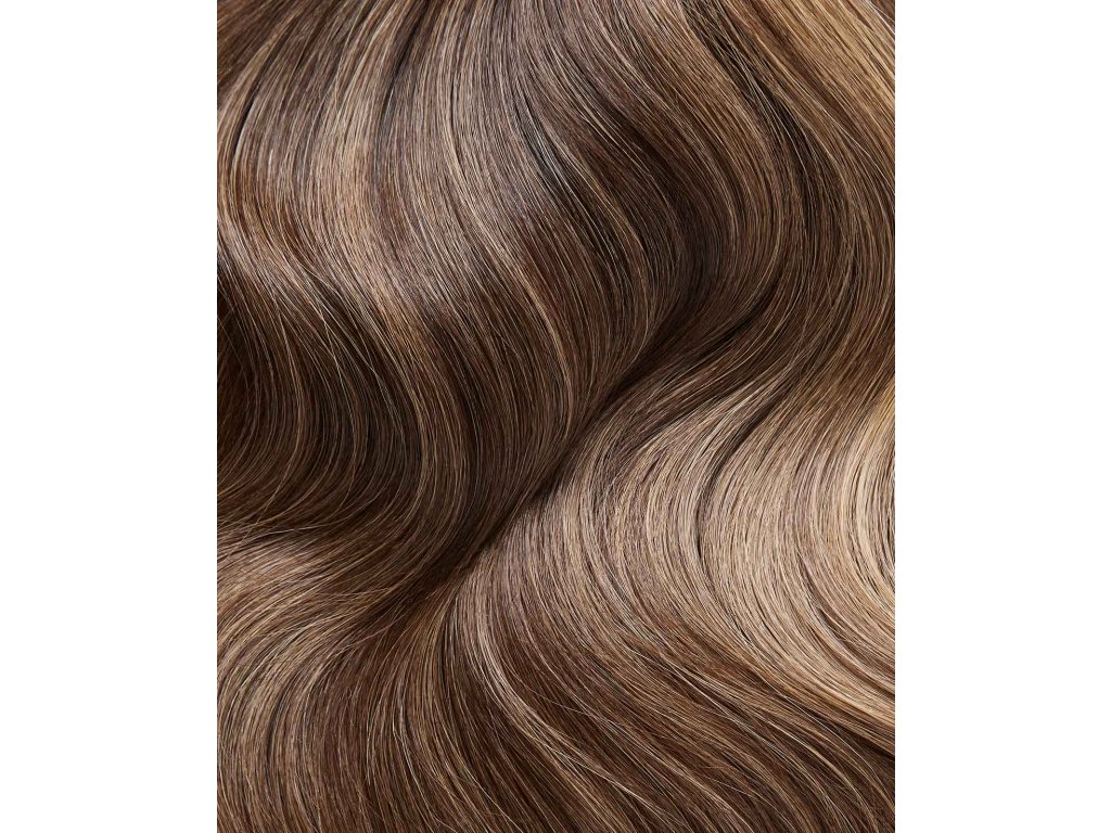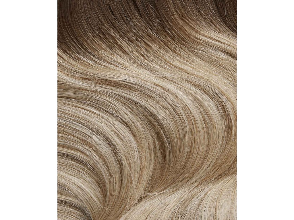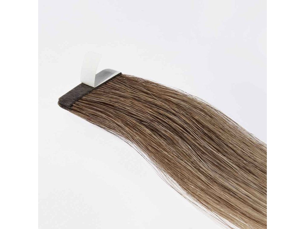 Neviditelné matné vlasové pásky s technologií imitací kořínků. Každý prodloužený vlasový pásek je pečlivě vyroben ručně. Jednotlivé vlasy jsou vstřikovány do membrány a vytvářejí tak spojovací oblast, která vypadá jako klientčina vlastní kořínková oblast.