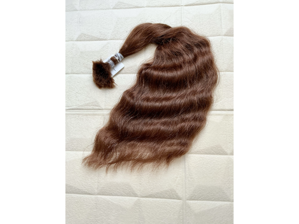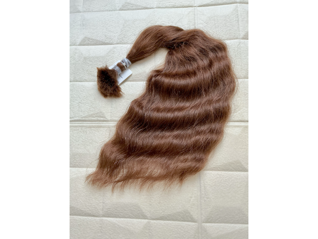 České panenské vlasy 57 cm. Odstín v hloubce 6-7 .