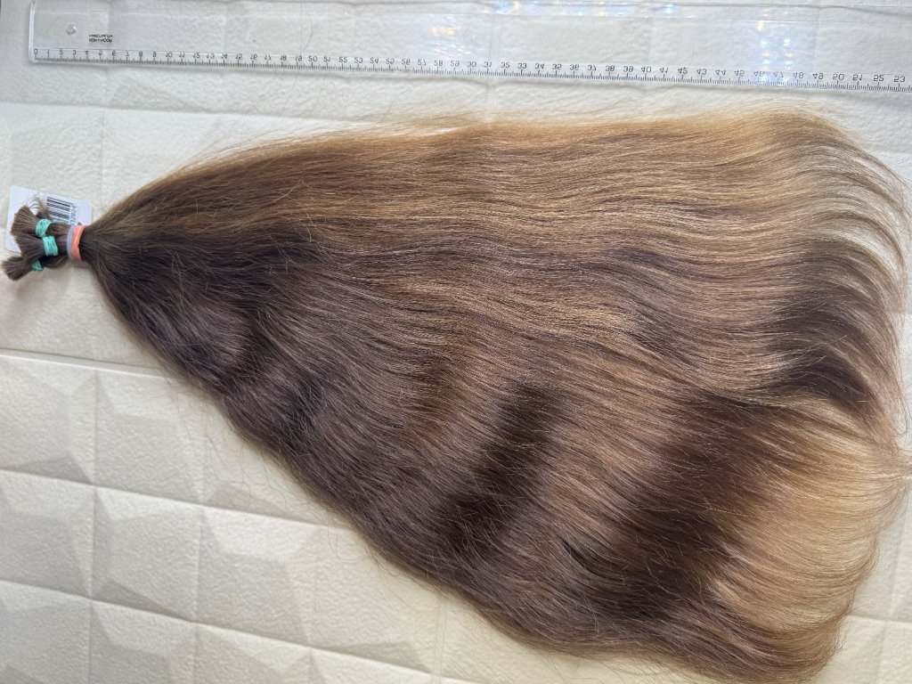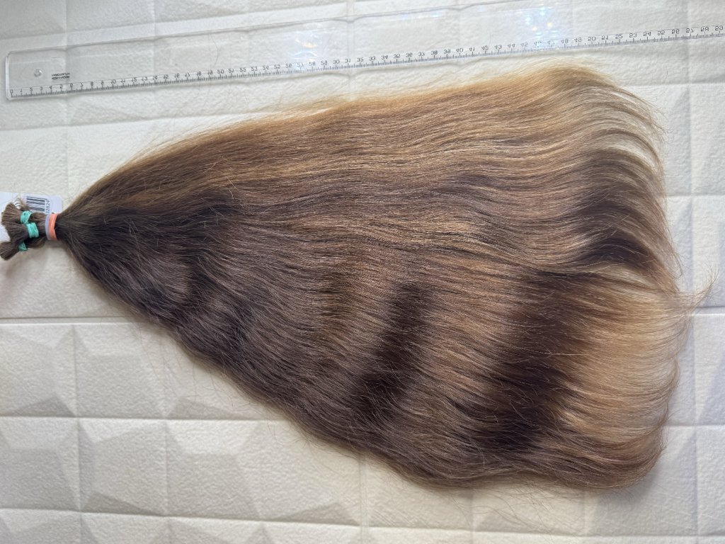 Panenské vlasy odstín 6-7. Lehce vyšisované. Délka 50 - 55 cm.