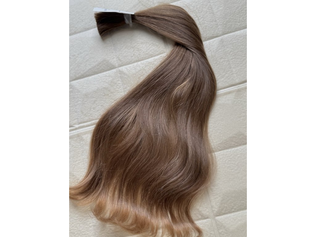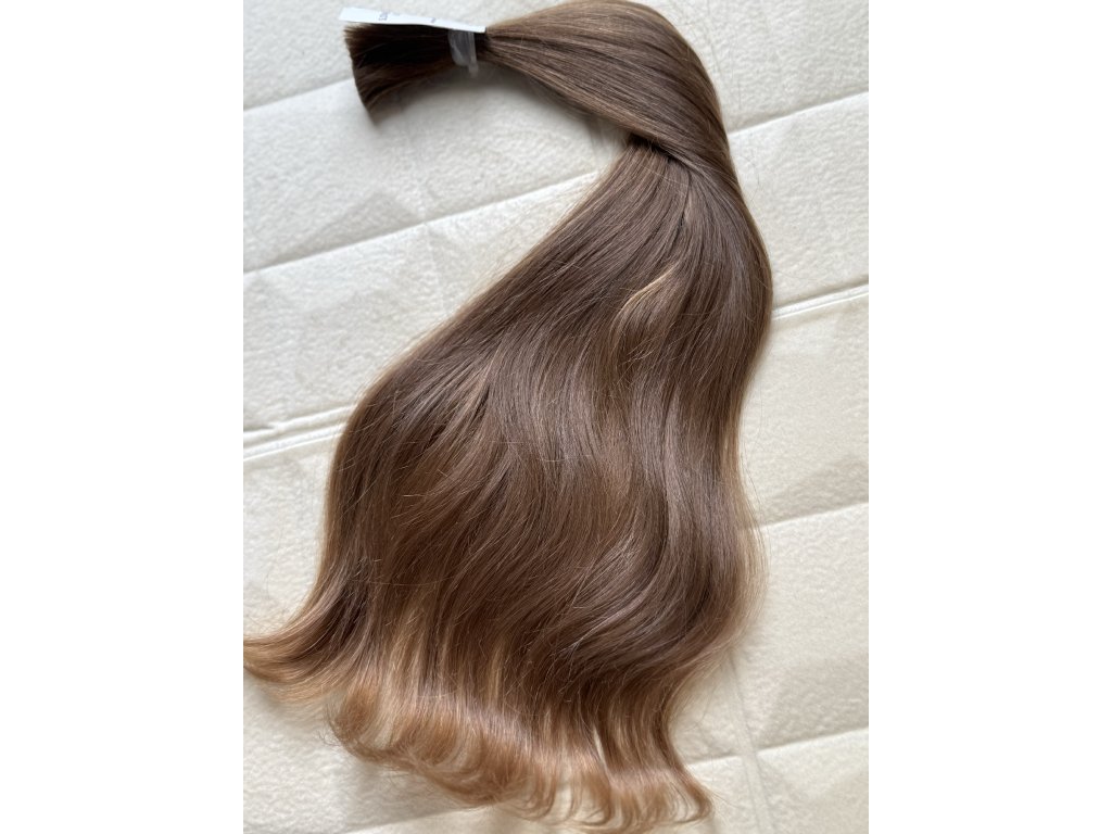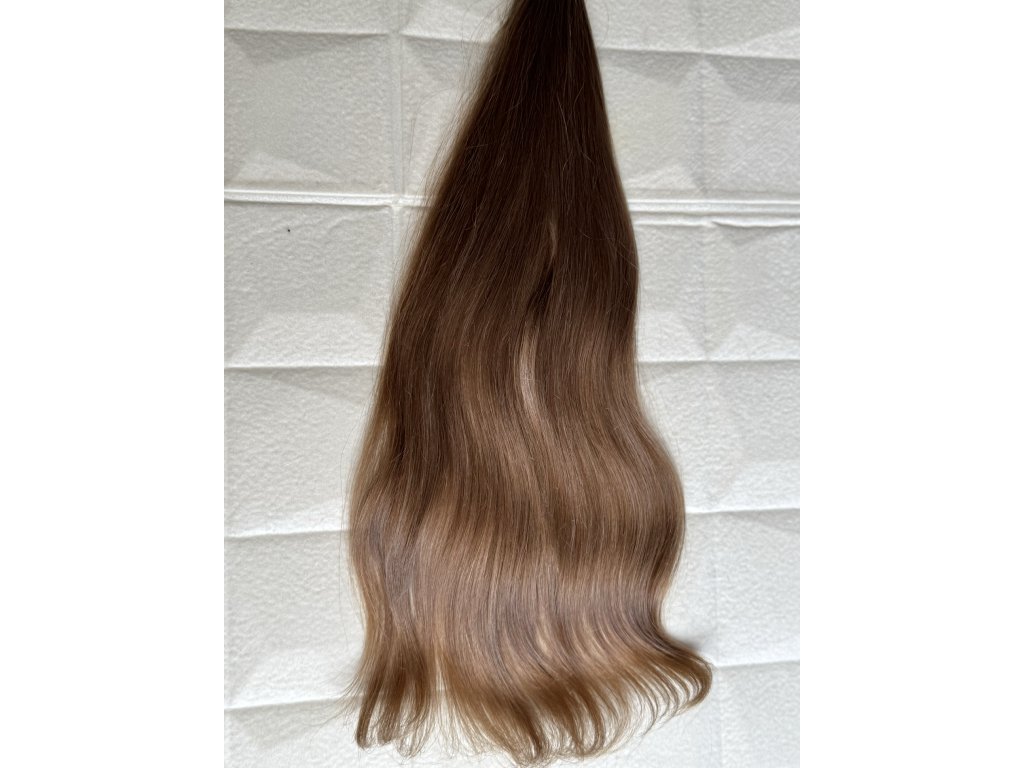 České panenské vlasy. Délka 50 cm. Odstín v hloubce 7-8.