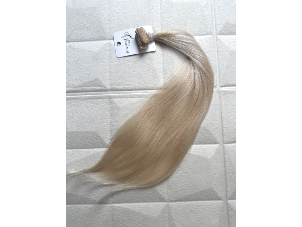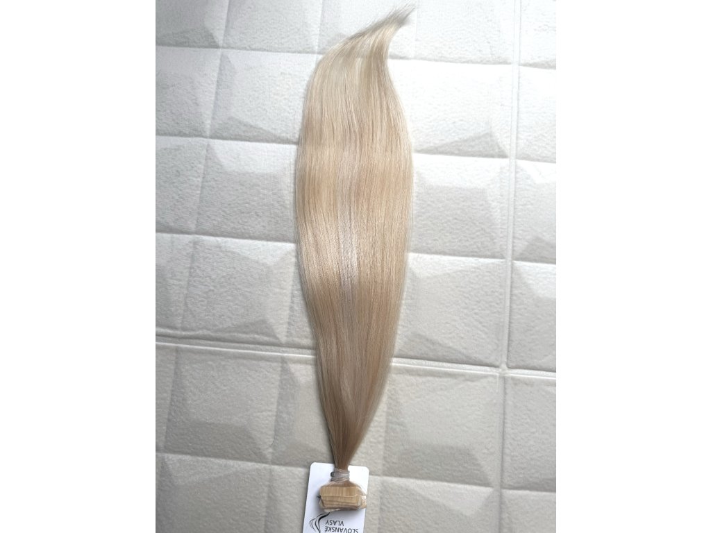 Nanotape české panenské zesvětlené vlasové pásky pro ženy, které preferují již zesvětlené blond velmi jemné, zdravé, hladké vlasy. Můžete aplikovat i přeliv na vlasy. Délka 30 - 35cm. Odstín v hloubce 10 .